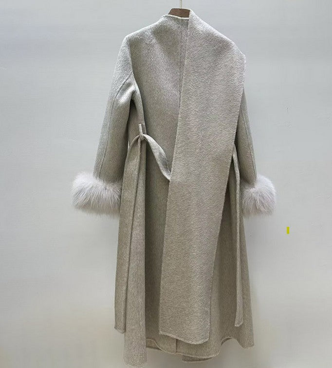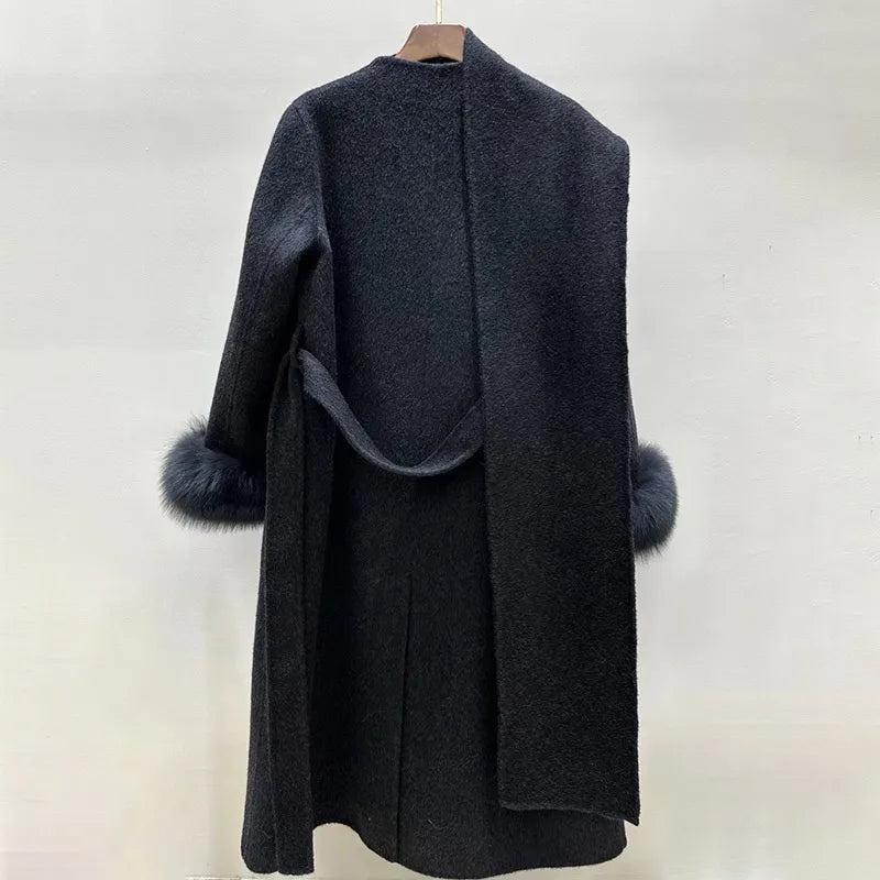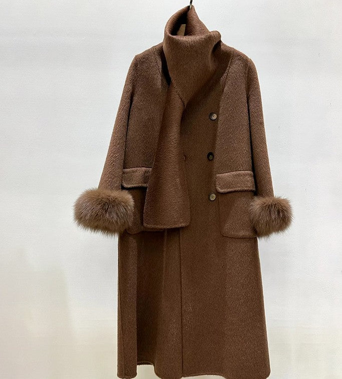 Crown | Cashmere Wool Coat with Fox Fur Cuffs & Scarf