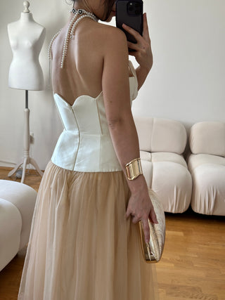 Ainoor | Maxi Longsleeve Dress Pleated Satin Ivory